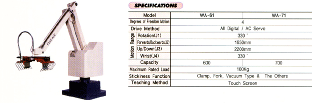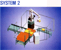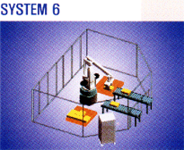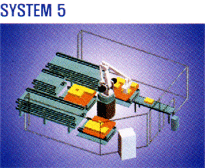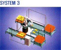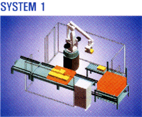 2개의 파렛트콘베어의 직선배치에 의한 적재 SYSTEM(1개의 파렛트메거진으로부터 ROBOT으로 공급)